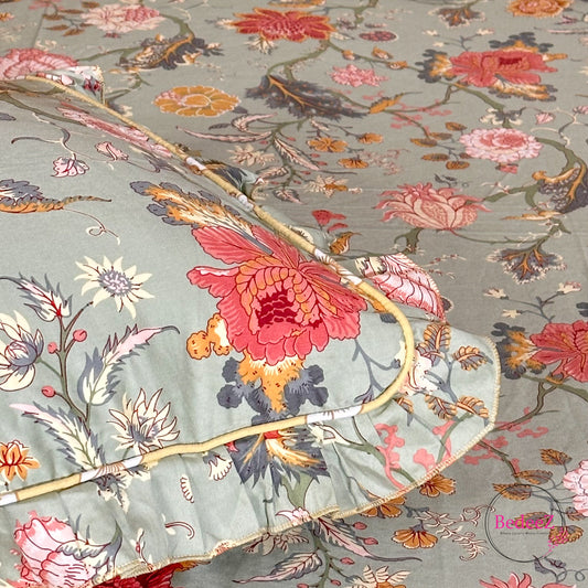 Crimson Bloom Cotton Frill Bedsheet