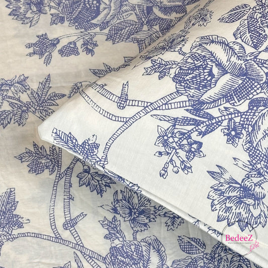 Indigo Toile Botanical Single-Bed Bedsheet